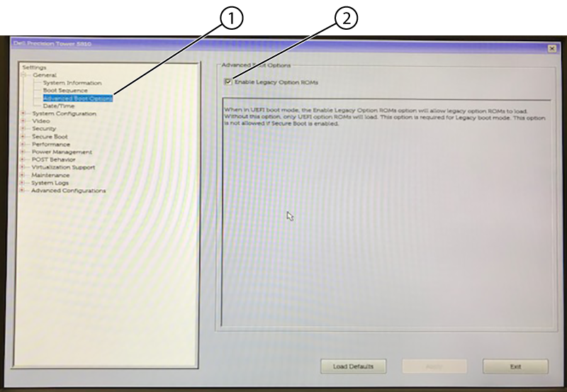 8. In the Advanced Boot Options pane, select Enable Legacy Option ROMs.