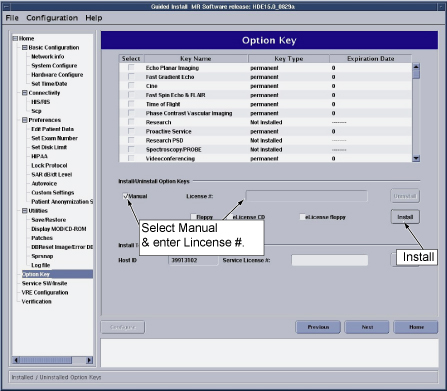 - Open Guided Install, and verify the option keys have been installed as permanent keys on the Option Keys tab.