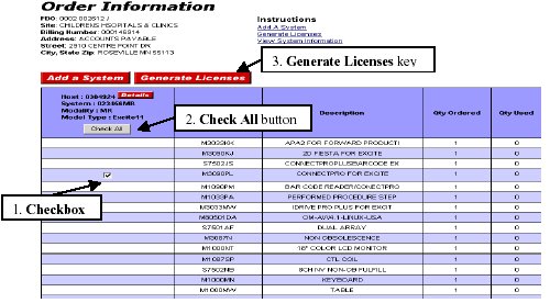 This feature is used to create option keys for a new or existing system based on an order. To create new licenses, the user must have the order number(s) that contain the options ordered, as well as the host id and system id of the system. The host id is the MAC address of the network card.