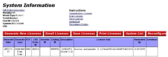 It is possible to retrieve a list of licenses that have been previously generated for a system, by searching for that system from the eLicense home page.