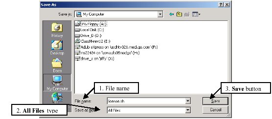 The license file can be saved to the hard disk drive for installation via Guided Install on the scanner and can later be transferred to a CDROM, printed, or FTPed to the scanner.