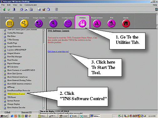 See Stopping the TNS Function Via Software for procedure to stop the TNS Function and then Enabling the TNS Function Via Software for turning the TNS Function back on.