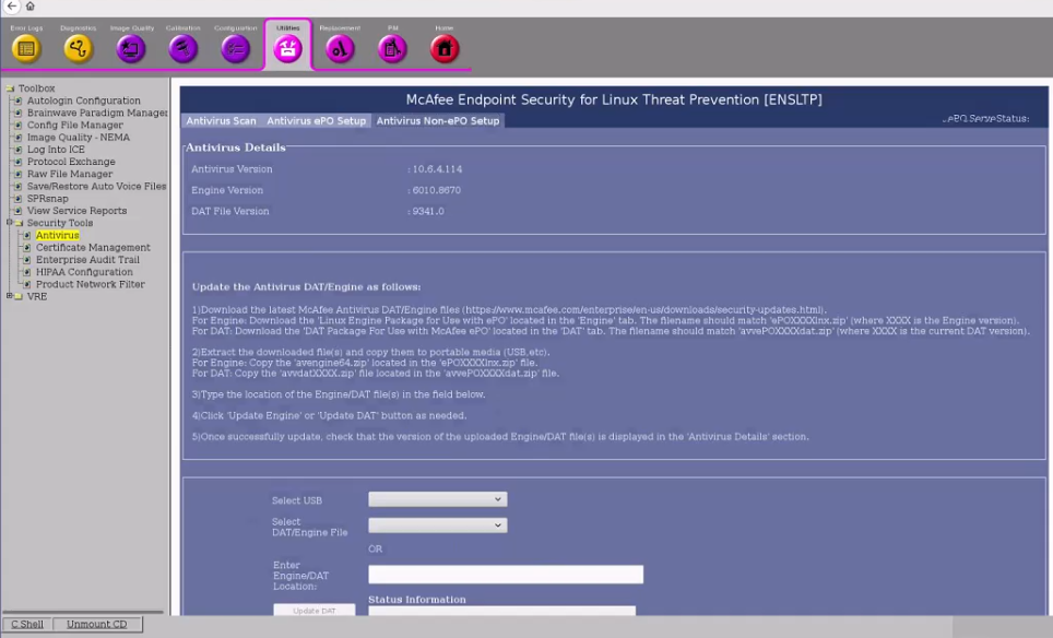 On the MR system, go to Service Browser > Utilities > Security Tools > Antivirus.