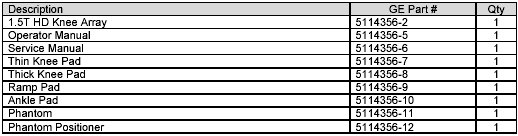 Follow this process to review the miscellaneous items for GE 1.5T HD Knee Array.