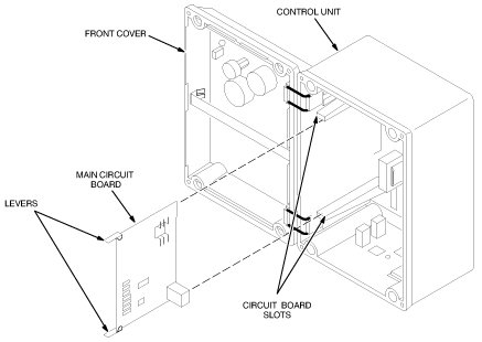 Lift the two levers on the top and bottom of the Main Circuit Board and pull the board out of the Control Unit.
