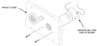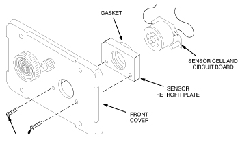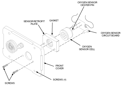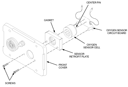 Install the Oxygen Sensor Cell, Sensor Circuit Board, and Sensor Retrofit Plate on the front cover with the two screws provided.