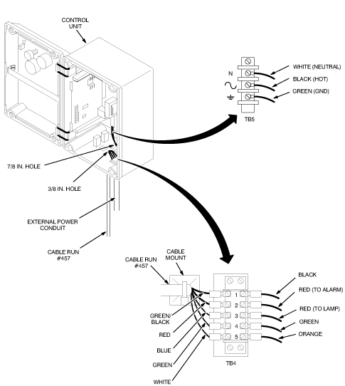 The non-latching relay is available at TB3. This is a fail-safe relay; the power-off position of the contacts is the same as the alarm position. This relay is only energized during an alarm condition or when power is interrupted. This is the relay that is normally used to activate a customer-provided exhaust fan (refer to Optional Equipment Installation). The contact positions for the power-off, alarm condition are shown in Table 2.