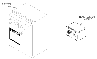 Control Unit: Contains most of the signal processing circuitry, the power supply, the meter, and audio and visual alarms. The Control Unit is typically mounted in the Operator Room near the Operator Console.