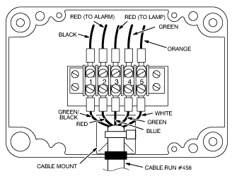 Connect the five wires from cable Run #458 to terminal 1 through 5 as shown in Figure 9.