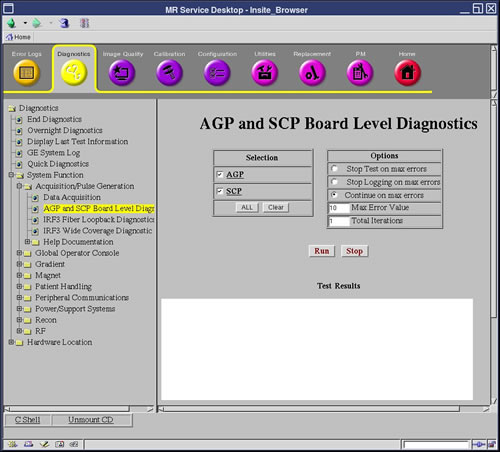 Diagnostics >> System Function >> Acquisition/Pulse Generation >> AGP and SCP Board Level Diagnostics