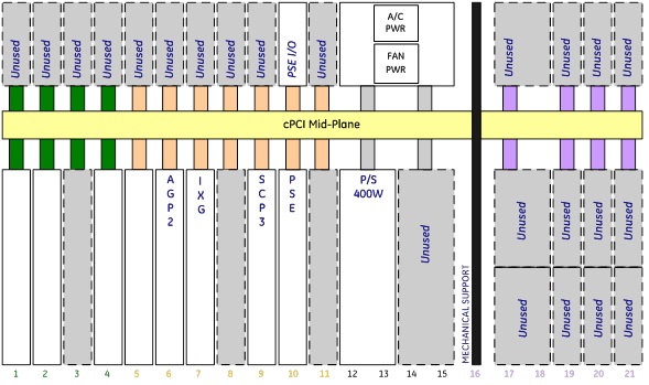 The CAM-lite3 contains a custom 6U cPCI midplane that is comprised of a single custom bus segment, two cPCI bus segments and a common power system. This midplane will be referred to as the CAM-lite3 midplane. The chassis has a right to left airflow path and utilizes two variable speed DC exhaust blowers. Power is distributed through up to two cPCI pluggable power supplies. Controller Area Network (CAN) communications and power supply test points are provided through an assembly mounted in the chassis