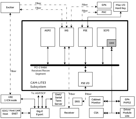 The Consolidated ASC MGD lite3 chassis (CAM Lite3) consolidates the components of the Multi-Generational Data acquisition chassis (MGD) and Amplifier Support Controller (ASC) chassis into one unit on the forward production Systems cabinets. The CAM-lite3 chassis combines the individual ASC and MGD boards into a common chassis.
