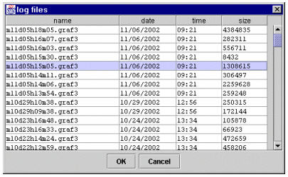 If you want to view a previous log file, click on GE Service and choose . See Figure 1. After the list of log files is displayed, click on the log file you want to be displayed and click the OK button. See Figure 2. The result area/table will be filled up with eddy current measurement numbers.