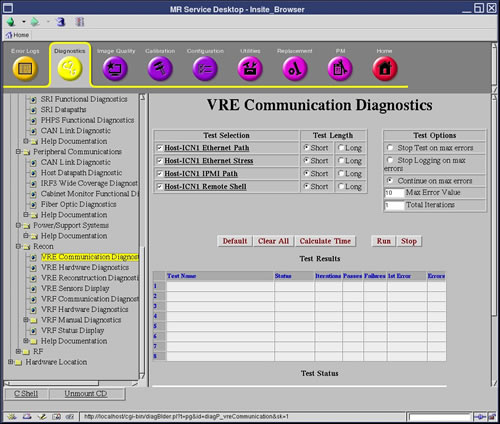 Diagnostics >> Hardware Location >> System Cabinet >> Recon >> VRE Communication Diagnostics