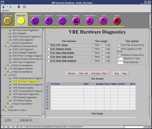Diagnostics >> System Function >> Recon >> VRE Hardware Diagnostics