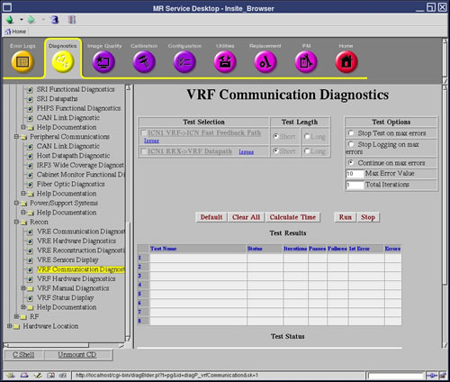 Diagnostics >> Hardware Location >> System Cabinet >> Recon >>VRF Communication Diagnostics