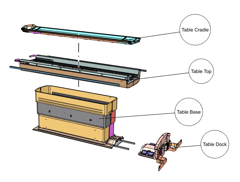 Low Height Fixed Table For Patient Table Straps and Pads FRU, see Straps and Pads for Patient Table Figure 1. Overview Figure 2. TABLE CRADLE Figure 3. TABLE TOP Figure 4. TABLE BASE Figure 5. TABLE DOCK
