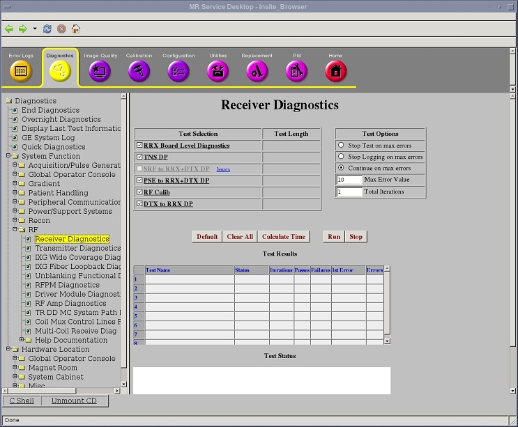 Diagnostics >> Hardware Location >> Magnet Room >> Receiver Diagnostics