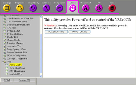 When the Host PC is shut down or rebooted, the system's ICN automatically shut down as well. Unless you are performing specific work on the VRE subsystem, the ICN do not need to be shut down prior to shutting down the rest of the system.