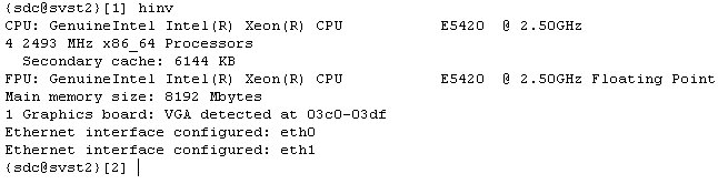 The host computer general status and configuration can be viewed by using the hinv command. An example of this commands usage and output is given in Figure 1.