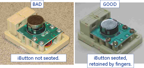 1. Verify iButton is seated correctly. An example of the iButton not seated is shown in Figure 8.