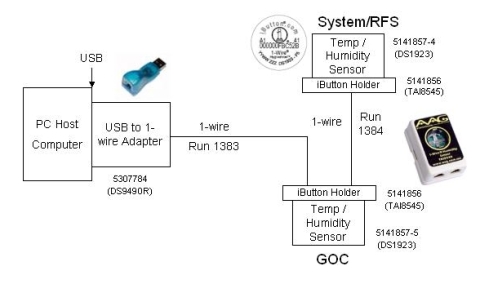 2. Verify that connections in Run 1383 are secure from USB to 1-Wire Adapter output port to the iButton Sensor 5141857-5 on the back of the GOC. (See Figure 1 and Figure 3).