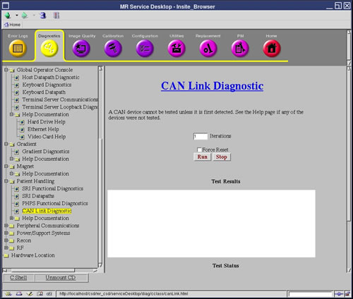 Diagnostics>>Hardware Location>>System Cabinet>>CAM>>Can Link Diagnostic