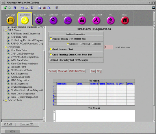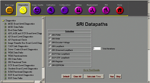 Diagnostics are available to check most parts of the system. The following sections describe these tests. This information is also available from the hyper-linked test names on the MR system (see Section 1 of Running Diagnostics).