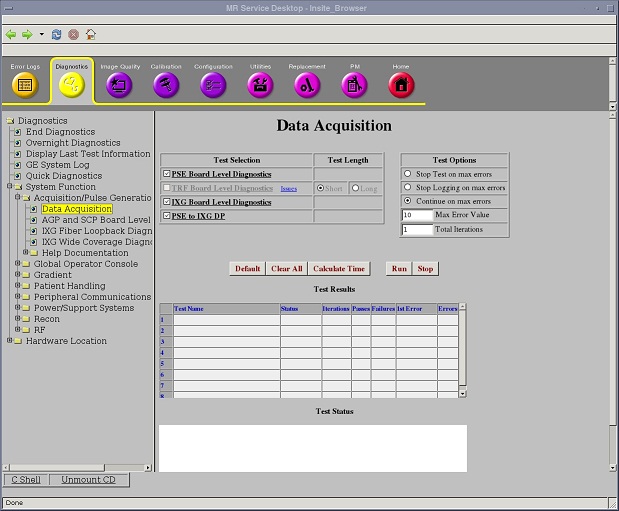 Diagnostics > System Function > Acquisition/Pulse Generation > Data Acquisition
