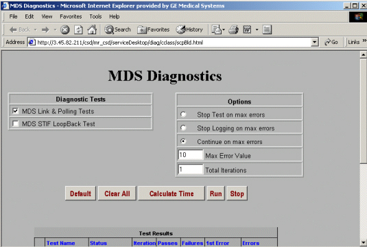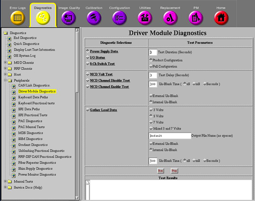 This diagnostic reads the Power Supply information from the DCB board every 5 seconds for the specified Test Duration (max 300 secs). The values are checked against the tolerances listed in the DcbConfig.cfg file. Any failing values will be printed out in red. Passing values will be printed out in blue. No error messages will be logged for failing power supplies since the Applications Code will be logging these errors automatically. See sample screen and comments in Diagnostic Tests. |