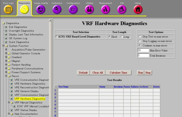 Diagnostics >> System Function >> Recon >> VRF Hardware Diagnostics