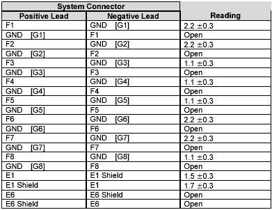 If one or more of the readings indicate a short, replace the cable. If all of the above readings indicate an open circuit condition, proceed to the PIN Diode Control Channels Check.
