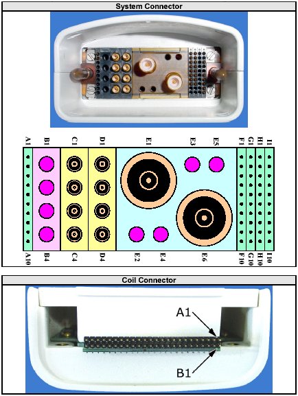 Use Figure 1 for pin identification while performing the procedures in External Cable Check and PIN Diodes Check. Referring to 1.5T HD Knee Array Coil Maintenance/Replacement, disconnect the coil cable from the coil.