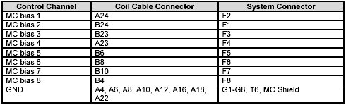 With the coil cable disconnected, use a multimeter to assure an open circuit condition exists between the designated pin and GND, for each signal channel in Figure 2.