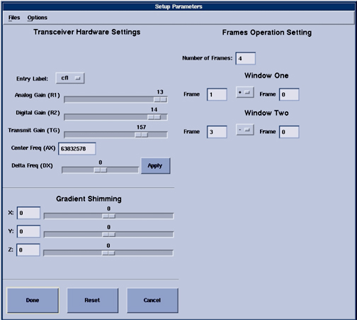 - Select Setup Params. A popup window will be presented (see Figure 1).