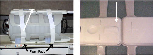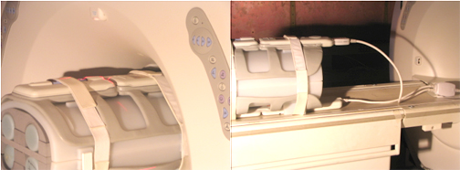 - Fasten the Velcro straps so that the coil firmly snugs the phantoms.
