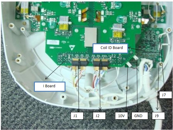 - Remove DC connectors: 10V and GND from I Board and J7, J9 from Coil ID PCB. See Figure 2.