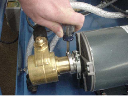 - Remove the clamp that secures the pump coupling to the motor.