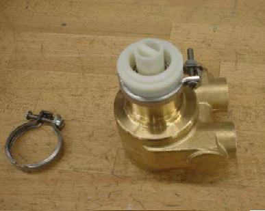 - Place the coupling with one clamp onto the pump and tighten just enough to keep in place.