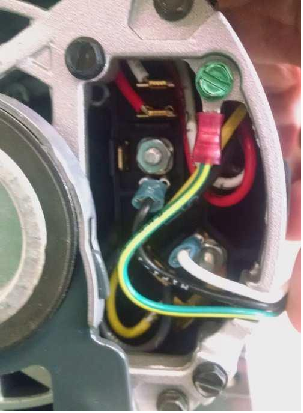 note:Write down the location of the wires on motor before removing. Disconnect the wires at the spade lugs. DO NOT MOVE ANY JUMPERS ON REPLACEMENT MOTOR. It has been wired for 208-230V service prior to shipping form the factory.Figure 10. Location of the Wires