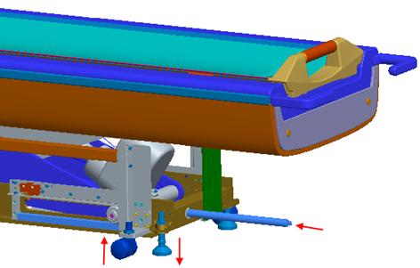 Figure 12. Heighten leveling pads, lower casters to topmost position, push table back to bay