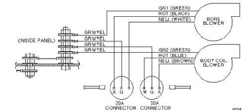 The BRM Blower Box contains two blowers; one provides cooling air to the gradient body coil, the other provides cooling air to the patient comfort module. The blowers are AC induction motors. Since they do not have brushes, the entire motor is replaced.