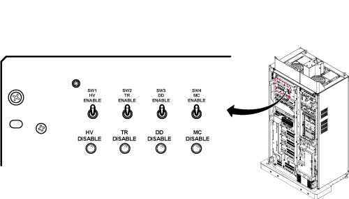 - Place the RF Enable switch on the exciter (located on the left side of the System Cabinet) to the enable (up) position.