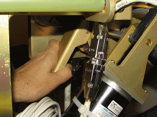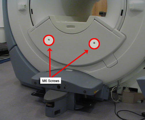 - Using a 5 mm Allen wrench, remove the two M6 screws holding