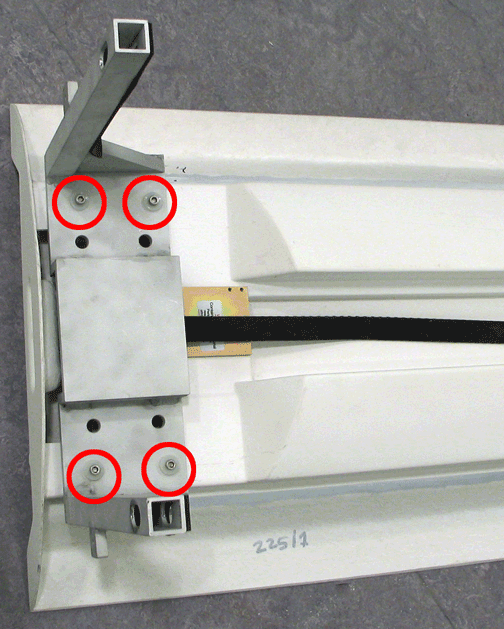 - Unscrew the two Phillips screws that hold the belt clamp plate in place on each of the two belt clamps.