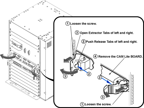 - To withdraw CAM Lite2 chassis, remove CAM Lite Access Plate