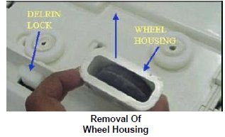 - Remove the wheel housing nearest to the Delrin lock.