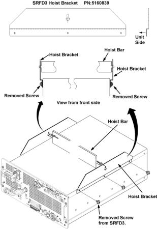 - Install the two hoist brackets to the chassis of CSA with 6 removed screws. Do not tighten 6 screws of hoist brackets.