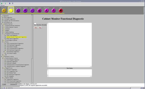 - Select 'Diagnostics / System Function / Peripheral Communications / Cabinet Monitor Functional Diagnostics'.