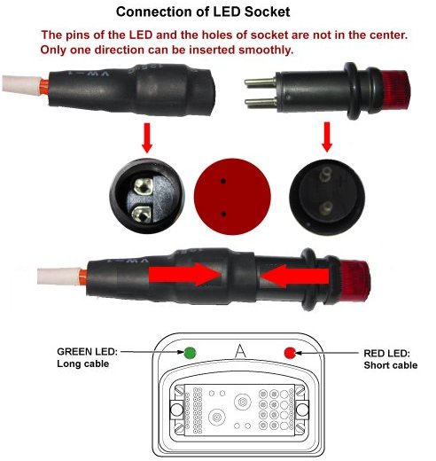 note:Connect the LED cable so that the cable is centered to the LED itself.